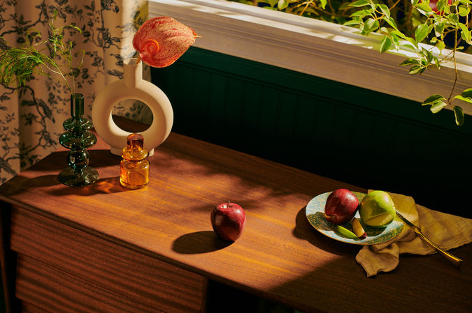 Building Snow’s warm and inviting room that overlooked the orchard was great fun. Her “cottage core” style required the right balance between rustic, natural materials and refined set design details like floral patterned drapes.